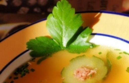 Menge Zutat 1 Gurke 1/2 l Instant-Suppe 5 EL Petersilie und/oder Schnittlauch 1 Prise Salz 1 Prise Pfeffer 1 Dose Fleisch (Frühstücks [...]