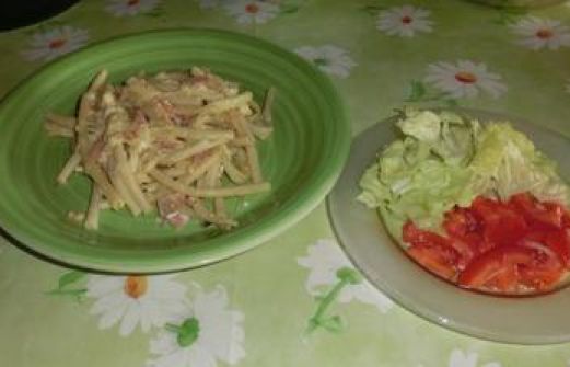 Zutaten für Personen Rezept mit Bild: Makkaroni mit Schinken und Käse Bild einstellen 150 g Makkaroni 150 g Kochschinken 150 g Südtiroler Bergkäse 1 Zwiebel 2 Eier 1 Stück Kräuterbutter sgm [...]