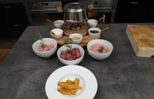 Zutaten für Personen Bild einstellen Fondue 250 g Rinderfilet 250 g Schweinefilet 250 g Putenbrust 1 ½ Liter Sonnenblumenöl Sauce 1: 250 g Sahnemeerrettich 150 g Preiselbeeren aus dem Glas Sauce 2: [...]