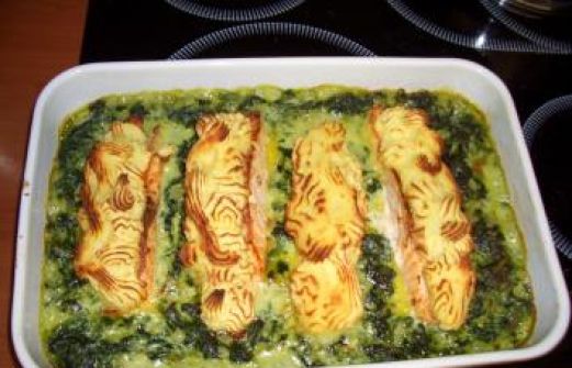 Zutaten für Personen Rezept mit Bild: Lachs mit Kartoffelkruste Bild einstellen 1 kg Kartoffeln mehlig Salz Pfeffer weiß 2 Zwiebel 5 EL Butter 750 g Blattspinat tiefgefroren 1 EL Mehl 15 [...]