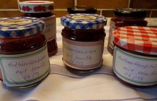 Zutaten für Personen Rezept mit Bild: Erdbeerkonfitüre mit Vanille Bild einstellen 1 Kilogramm Erdbeeren 1 Vanilleschote 350 Gramm Gelierzucker mit Süßungsmittel aus Stevia 2:1 von Dr. Oetker Zitron [...]