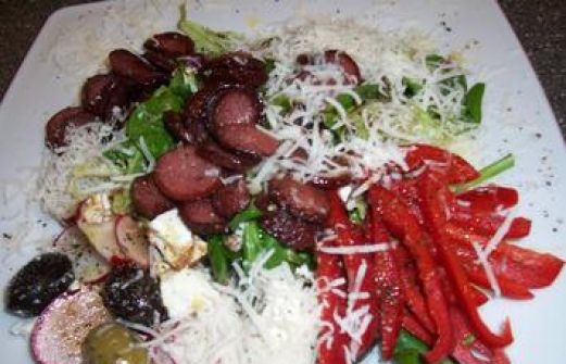 Zutaten für Personen Rezept mit Bild: Griechischer Salat mit krossen Cabanossi Bild einstellen Salat gemischt Oliven Paprika Gurke Schafskäse Radieschen 100 gr. Cabanossi Parmesan [...]