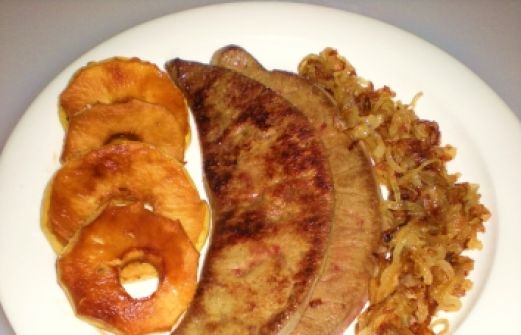 Zutaten für Personen Rezept mit Bild: FLEISCH: Kalbsleber mit gerösteten Zwiebeln, karamellisierten Äpfeln Bild einstellen 800 g Kalbsleber 4 große Zwiebeln frisch 3 Äpfel, mürbe, süße, damit die Scheiben ganz bl [...]