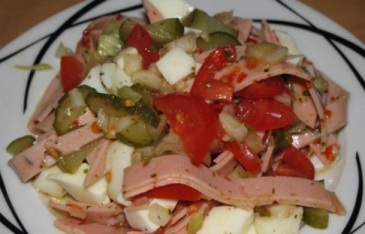 Menge Zutat 150 g Paprikawurst fettarm 3% Fett 1 St kleine Zwiebel 3 kleine Gewürzgurken 4 St Kirschtomaten 2 St hart gekochte Eier,davon das Eiweiß [...]