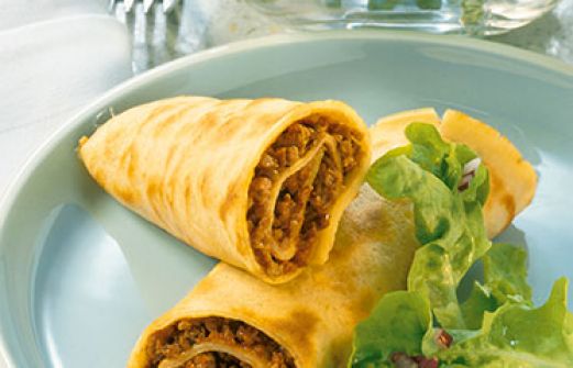 Gefüllte Pfannkuchen Zutaten 3 Eier 200 g helles glutenfreies Mehl (z.B. Mix C von Dr. Schär) 200 ml Milch 1 EL Öl 200 ml kaltes Wasser 1 kräftige Prise Salz 1 Zwiebel 2 Knoblauchzehen 6 EL Öl 400 g mageres Hackfleisch 2 EL Tomatenmark Salz Pfeffer Muskatnuss 100 ml [...]