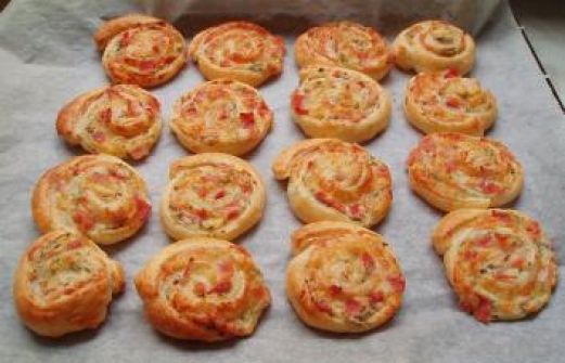 Zutaten für Personen Rezept mit Bild: Schinken-Schnecken Bild einstellen 1 Rolle Blätterteig 0.5 Becher Schmand 25 gr. italienische Kräuter, TK 100 gr. Kochschinken 100 gr. geriebener Käse [...]