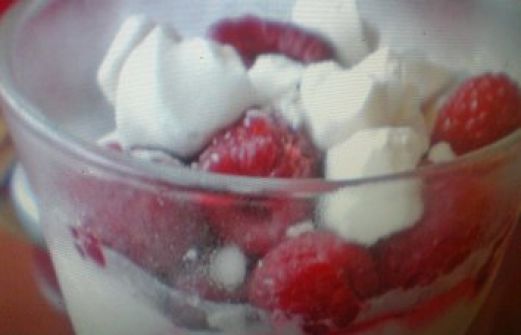 Zutaten für Personen Rezept mit Bild: Himbeertraum Bild einstellen 250 Gramm Himbeeren TK 1 Päckchen Vanillezucker 1 Päckchen Sahnesteif 2 Becher Sahne 100 Gramm Baiser /am besten die Kleinen [...]