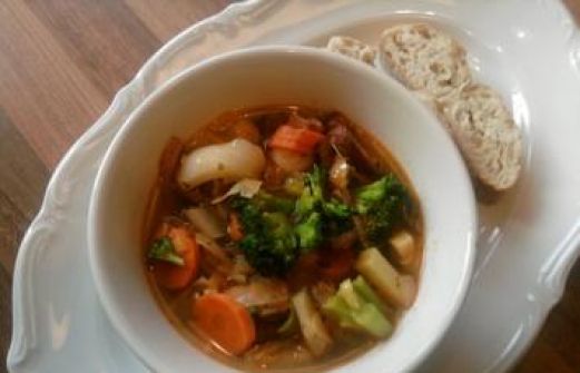 Zutaten für Personen Rezept mit Bild: Trappers "Herbstliche Gemüse-Terrine" Bild einstellen 3 Esslöffel Öl zum Braten 1 große Gemüsezwiebel oder zwei/drei Zwiebeln 500 Gramm Weißkohl 500 Gramm gemischtes G [...]