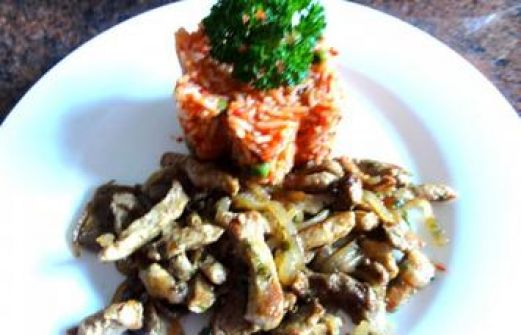 Zutaten für Personen Rezept mit Bild: Rind/Schwein: ZWIEBELFLEISCH an pikantem Gemüsereis Bild einstellen Zutaten Fleisch: 500 gr. Schweinerückensteak am Stück mit: Salz, Pfeffer, Paprikap. edelsüß + Th [...]