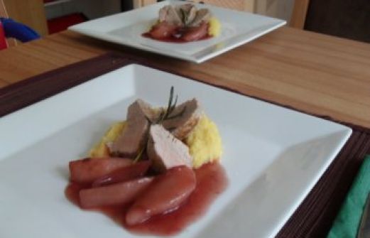 Zutaten für Personen Bild einstellen 250 ml Rotwein 250 ml Gemüsebrühe 50 ml Balsamico 5 Schalotten 1 Birne frisch 1 EL Stärke 2 EL Wasser 1 EL Zucker 400 g Schweinefilet 2 EL Olivenöl Zweige Rosmarin, [...]