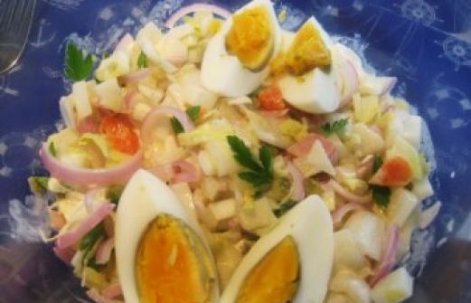 Zutaten für Personen Rezept mit Bild: Chicoreesalat ... herzhaft Bild einstellen 2 Kolben Chicoree 1 Esslöffel Zitronensaft frisch gepresst 3 kleine Gewürzgurken Sauerkonserve 3 Esslöffel Gurkensud 2 Esslöf [...]
