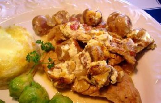 Zutaten für Personen Rezept mit Bild: Eingelegtes Putenfleisch Bild einstellen 300 g Putenschnitzel 1 Teelöffel Öl Steakgewürz Geflügelgewürz Typ Paprika 10 g Butterschmalz 75 g Schinkenwür [...]