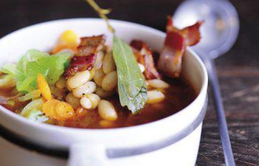 Zutaten für Personen Bild einstellen 250 g Bohnen weiß getrocknet 1 l Rooibostee 200 g Speck durchwachsen 2 Stück Knoblauchzehen 2 Stück Zwiebeln 2 Stück Stangensellerie 1 Stück Möhren 1 Stück Lauchstange 1 St [...]