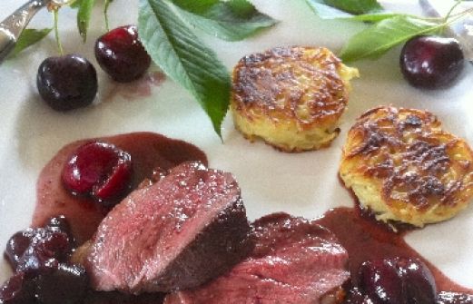 Entenbrust mit Kirschen - Magret de canard aux cerises Zutaten 1 Entenbrust à 350 g 350 g süsse dunkle Kirschen -------- Sauce: 1 rote Zwiebel, feingeschnitten 20 g Ingwer, gerieben 200 ml kräftiger trockener Rotwein 40 ml Sojasauce 50 ml Portwein 1 El Honig 3 El Entenglace 1 B [...]