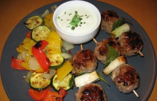 Zutaten für Personen Rezept mit Bild: Balkan-Hackspieße mit gegrilltem Gemüse und Joghurt- Wasabi-Dip Bild einstellen Balkan-Hackspieße/ 9 Stück 600 g mageres Rinderhack 1 kleine Zwiebel 1 Zehe Knoblauch [...]