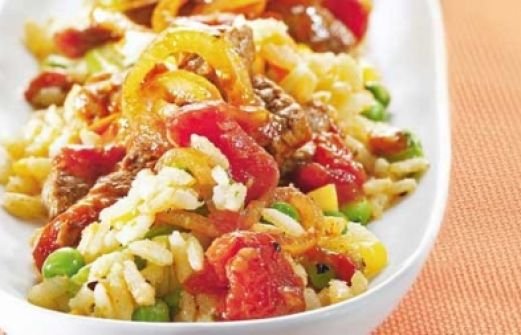 Menge Zutat 400 g Steakfleisch z.B. Minutensteaks 1 St Zwiebel 2 St Knoblauchzehen 2 EL Öl 1 Dose stückige Tomatten 425 ml 400 ml Fleisch [...]