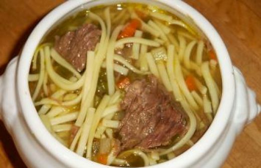 Zutaten für Personen Rezept mit Bild: Rindfleischsuppe Bild einstellen 1 Bund Suppengemüse 500 g Rindfleisch vom Bug 3 L Wasser Pfeffer, Salz 2 TL gekörnte Fleischbrühe 2 Tassen Suppennudeln [...]