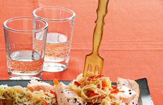 Sauerkrauttopf mit Paprika und Lachs Zutaten 1 mehligkochende Kartoffel (etwa 150 g) 1 mitteldicke Stange Lauch 1 rote Paprikaschote 2 EL Butter 500 g gegartes Sauerkraut (Dose oder Beutel) 1/8 l Gemüsebrühe 500 g nicht zu fettes Lachsfilet Salz und Pfeffer 150 g Sahne je [...]