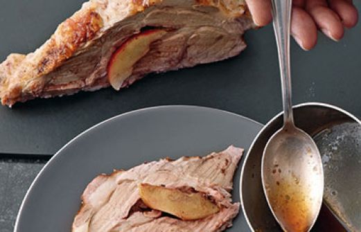 Schweinehals mit Blutwurst-Apfel-Füllung Zutaten ca. 1/4 kg Schweinehals am Stück frische Blutwürste (à ca. 100 g) säuerlicher Apfel (ca. 100 g, z. B. Boskop) 1 große Knoblauchzehe 1/2 EL Butter 1 TL Kümmelsamen 1 TL Salz schwarzer Pfeff er aus der Mühle 2 große Zwiebeln (ca [...]