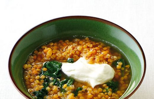 Rote Linsensuppe mit Spinat Zutaten 125 g rote Linsen 1 Stück frischer Ingwer (ca. 1 cm) 1/2 unbehandelte Zitrone 1 EL Butter 1/2 TL gemahlener Koriander 1/2 TL gemahlener Kreuzkümmel (Cumin) 750 ml Gemüsebrühe 1 Hand voll junge Spinatblätter 2 EL Vollmilchjoghurt 1 Prise S [...]