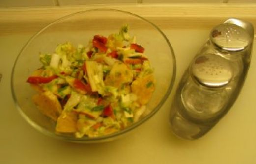 Zutaten für Personen Bild einstellen 1 Kopf Chinakohl frisch 3 St. Mandarinen frisch 2 St. kleine Äpfel, säuerlich, gewürfelt 10 St. Cherry-Tomaten, halbiert od. geviertelt 1 St. Paprikaschote, rot, gewürfelt 100 g Gouda o [...]