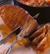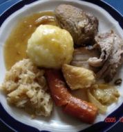 Zutaten für Personen Rezept mit Bild: Schweinebraten mit Semmelknödel und Sauerkraut Bild einstellen 1 ½ kg Schweine-Krustenbraten 2 EL scharfer Senf Salz, Pfeffer, Kümmel gemahlen und ganz 2 Stück Zwi [...]