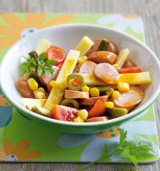 Zutaten für Personen Bild einstellen 4 Scheiben Mortadella 2 Scheiben je 40 g Gouda od. Edamer 1 kl. Zwiebel 0.5 rote Paprika 3 EL Essig 1 ½ EL Öl Pfeffer und Salz Rezept Zubereitung Käse-Wurst-Salat [...]