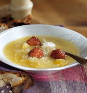 Zutaten für Personen Bild einstellen 150 g Zwiebeln 40 g Butter 0.5 Teelöffel Rosenpaprika 1250 ml Wasser 3 Stück Gemüsebrühwürfel 400 g Sauerkraut Konserve/Glas 1 Teelöffel Kümmel 300 g Kartoffeln vorwiegend festkochend 1 [...]