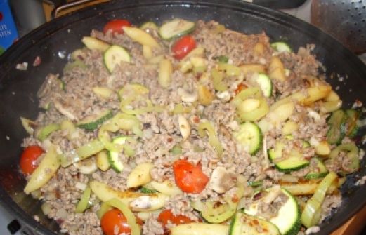 Zutaten für Personen Rezept mit Bild: Fl/Rind/Schwein: Hackpfanne mit Schupfnudeln Bild einstellen 500 g Hackfleisch gemischt 3 mittelgross Spitzpaprika grün 2 klein Zucchini 250 g Champignons 250 g Kir [...]
