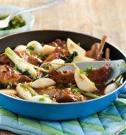 Zutaten für Personen Bild einstellen 600 g kleine Kartoffeln Salz 1 Bund Möhren 1 Bund Frühlingszwiebeln 300 g Spargelspitzen 1 Zwiebel 3 EL Butter 300 g fettreduzierte Sahne 3 EL gehackter Kerbel 4 Stücke Lachsfilet [...]