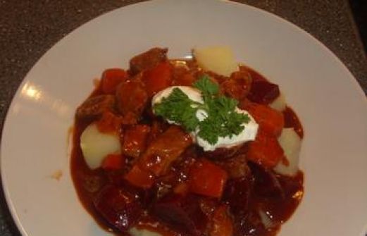 Zutaten für Personen Rezept mit Bild: Gulasch mit Rote Bete Bild einstellen 500 Gramm Schweinegulasch 2 Zwiebeln Butterschmalz 1 Bund Suppengemüse 2 Kugeln Rote Bete gekocht 1 Liter Gemüsebrühe [...]
