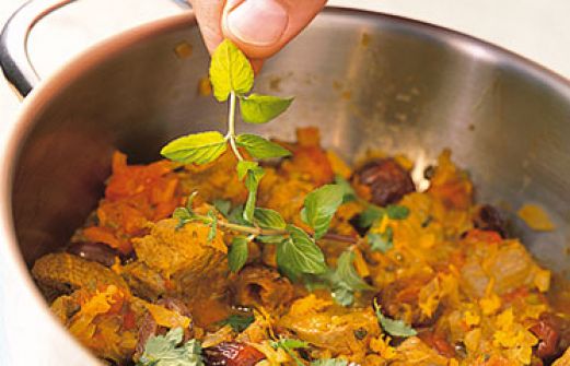 Lamm-Tajine mit Datteln Zutaten 750 g Lammfleisch ohne Knochen (Keule, Schulter) 1 dicke Gemüsezwiebel 3 Knoblauchzehen 1 Bund Petersilie 1 Bund Koriandergrün 1 TL edelsüßes Paprikapulver 1 TL grob geschrotete Chilischoten 1 TL Kurkuma 1/2 TL gemahlener Kreuzkümmel 1/2 TL ge [...]