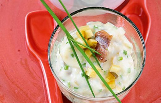 Remoulade mit Schnittlauch Zutaten 2 Eigelb 2 TL Dijonsenf 4 EL Rotweinessig 180 ml Sonnenblumenöl Salz 1 Gewürzgurke (aus dem Glas) 1 EL Kapern (aus dem Glas) 2 Sardellenfilets in Öl 1 Bund Schnittlauch weißer Pfeffer frisch gepresster Zitronensaft guk:similarity-keyword [...]