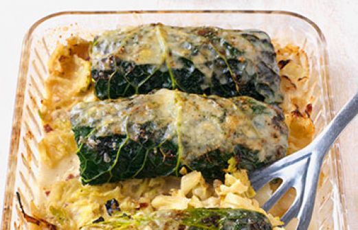 Wirsingrouladen mit würzigem Schweinehack Zutaten 1 kleiner Wirsingkohl (ca. 700 g) Salz 40 g magerer Schinkenspeck 1 kleine Zwiebel 1 EL Pinienkerne 1 EL Olivenöl schwarzer Pfeffer geriebene Muskatnuss 150 g mageres Schweinehackfleisch 2 Stängel glatte Petersilie 2 Salbeib [...]