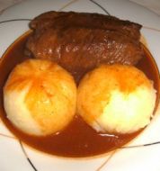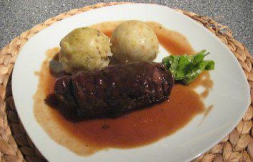 Zutaten für Personen Rezept mit Bild: Rinderrouladen in Rotweinsoße Bild einstellen 2 Rinderrouladen 4 Karotten 3 Stengel Staudenselelrie 2 Zwiebeln 4 kl. Gewürzgürkchen 8 Scheiben Bacon 2 EL Senf [...]