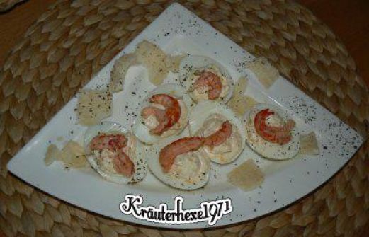 Zutaten für Personen Rezept mit Bild: gefüllte Eier die 2. Bild einstellen 3 hartgekochte Eier frisch geriebener Parmesan 1 Päckchen Flusskrebsschwänze Salz, Pfeffer 1 TL Bouillongewürz 1 EL Schman [...]