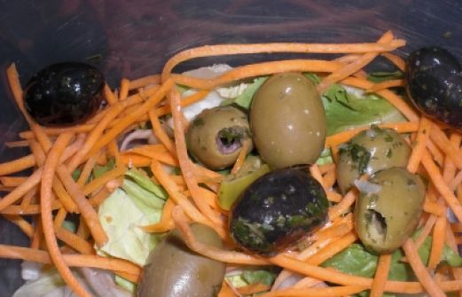 Menge Zutat 1/4 Kopfsalat 8 große Möhren 100 g gemischte, eingelegte Oliven 2 EL Pesto Genovese 100 g Sahne etwas Salz [...]