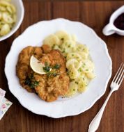 Zutaten für Personen Bild einstellen Die Schnitzel 4 Scheibe Kalbsschnitzel 4 Stück Eier Freiland 10 Esslöffel Mehl 10 Esslöffel Semmelbrösel 5 Esslöffel Pflanzencreme Salz Pfeffer aus der Mühle schwarz Sauc [...]