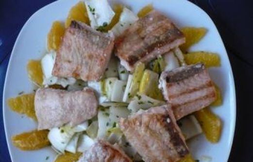 Zutaten für Personen Rezept mit Bild: Chicoree - Salat mit Lachs Bild einstellen 300 g Lachsfilet 1 EL Mehl Salz, Pfeffer, Zitronensaft Olivenöl zum Braten -----für den Salat ---- 2 Stauden Ch [...]