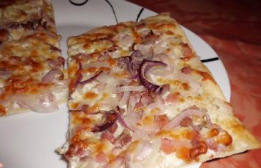 Zutaten für Personen Rezept mit Bild: Flammkuchen Bild einstellen 125 ml Wasser 2 EL Olivenöl 1 Prise Salz 250 gr. Mehl 1 Becher Crème fraîche mit Kräutern 200 gr. Bauchspeck gewürfelt 2 Stk. Zwieb [...]