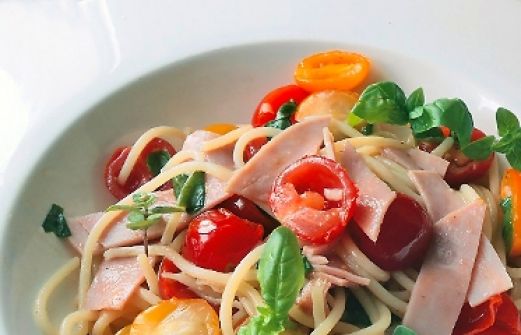 Spaghettini mit Cocktailtomaten, Majoran und Olivenöl Zutaten 400 Gramm Spaghettini 400 Gramm Cocktailtomaten, rot, orange, gelb 150 Gramm Prosciutto cotto, in Streifen geschnitten 1 Hand voll frische Majoranblätter 1 Hand voll Basilikumblätter 4 EL sehr gutes mild-fruchtiges Olivenö [...]
