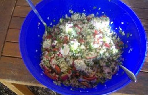 Zutaten für Personen Rezept mit Bild: Bulgursalat Bild einstellen 400 g Bulgur 1 Bund Radieserl 1 Bund Lauchzwiebeln 2 Zwiebeln 2 rote Paprika 1 Bund Petersilie frisch 1 Knöllchen Knoblauch f [...]