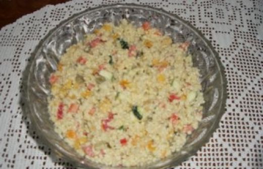Zutaten für Personen Rezept mit Bild: Bulgursalat Bild einstellen 150 g Bulgur ganz + 1 TL Gemüsebrühe Pulver 0.5 Stk. rote Paprika 0.5 Stk. gelbe Paprika 50 g Gewürzgurke 50 g Zucchini 1 Stk. kleine r [...]