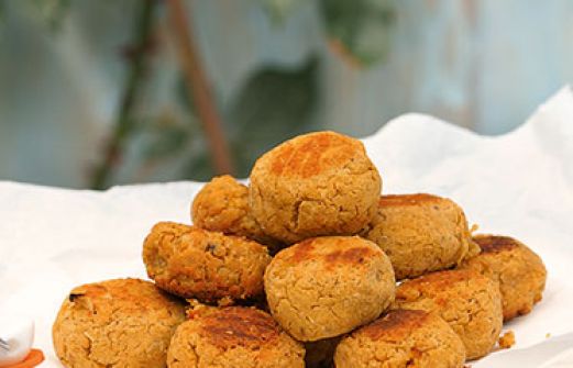 Falafel Zutaten 250 g getrocknete Kichererbsen (oder 550 g aus der Dose) 1 Zwiebel 1 Knoblauchzehe 1 TL rosenscharfes Paprikapulver 1 TL gemahlener Koriander Salz Pfeffer 2 EL Zitronensaft 1 Ei 4 EL Semmelbrösel Raps- oder Sesamöl zum Einfetten guk:similarity-keywords= [...]