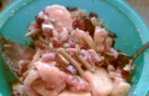 Zutaten für Personen Rezept mit Bild: Kartoffelsalat mit Matjes Bild einstellen 500 Gramm Kartoffeln festkochend 2 mittelgrosse Rote Bete , vorgekocht 1 Packung Matjesfilets 1 Dose Prinzessbohnen 2 mittelgr [...]