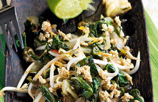 Sprossen-Mangold Zutaten 2 EL Sesamsamen 1 Mangold (ca. 700 g) 250 g frische Mungobohnensprossen 1 Zwiebel 2 Knoblauchzehen 4 EL Öl 1 EL Sesamöl 1-2 EL Sojasauce 2 TL rote Currypaste (Asienladen) 250 g ungesüßte Kokosmilch (Dose) Salz Pfeffer evtl. 1 Spritzer Limetten-od [...]