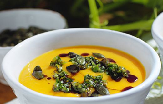 Kürbiscremesuppe Zutaten 1 mehligkochende Kartoffel (etwa 150 g) 1 Stück Muskat- oder Butternutkürbis (etwa 700 g) 1 Zwiebel 1 EL Butter 1 l Gemüsebrühe 1 Handvoll Feldsalat 1 große Bio-Orange 1 Frühlingszwiebel 2 EL Kürbiskerne 1 EL Kürbiskernöl Salz Pfeffer 1 EL fris [...]