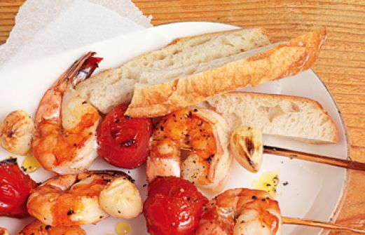Garnelenspieße mit Knoblauch Zutaten 12 große Knoblauchzehen Salz 12 Kirschtomaten 20 geschälte Garnelen (je etwa 50 g) 2 EL Olivenöl (+ Öl für den Rost) Pfeffer 8 lange Holz- oder Metallspieße guk:similarity-keywords=""> 12 große Knoblauchzehen , Salz , 12 [...]