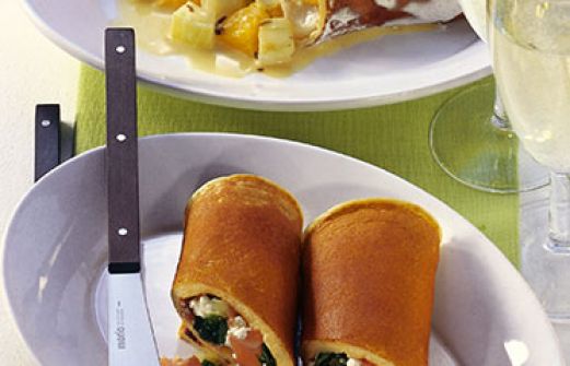 Pancakes mit Lachs und Spinat Zutaten 3 EL Butter 250 g Mehl 1 Päckchen Backpulver 1 Prise Salz 1/2 l Milch 4 Eier (Größe M) 1 Zwiebel 1 Knoblauchzehe 1/8 l Gemüsebrühe 250 g TK-Blattspinat 500 g Lachsfilet Pfeffer 100 g Feta (Schafkäse) Fett für Pfanne und Form [...]