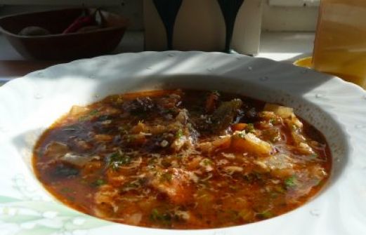 Zutaten für Personen Rezept mit Bild: Eintopf: Minestra (reichhaltige Gemüsesuppe) Bild einstellen 150 g Schweinefleisch 75 g Räucherspeck 2 - 3 EL Olivenöl kalt gepresst 1 Zwiebel rot 2 Knoblauchzehen [...]